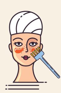 El líquido se aplica con pincel por toda la cara. Y se deja actuar unos 5 minutos (dependiendo del tipo de peeling).